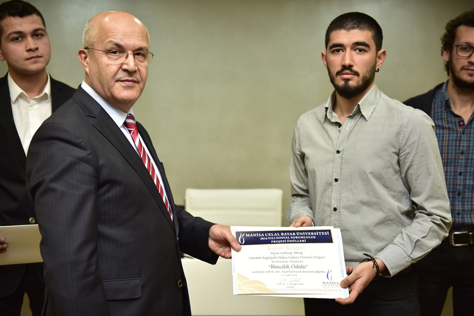 2016 yılı sosyal sorumluluk projeleri kapsamında birinciliği; danışmanlığını Prof. Dr. Tülin Aydemir'in yaptığı, "Bir Mum da Sen Yak Canlı Performans Projesi"yle Fen-Edebiyat Fakültesi Kimya Bölümü; ikinciliği danışmanlığını Yrd. Doç. Dr. Rahime Sancar Edis'in yaptığı "30.000 Raptiyeli Hafsa Sultan Portresi Projesi"yle Mühendislik Fakültesi Endüstri Mühendisliği Bölümü Optimum Kulübü; üçüncülüğü danışmanlığını Doç Dr. Sezai Taşkın'ın yaptığı "Engelsiz Yaşam İçin Enerjin Burada Projesi"yle Mühendislik Fakültesi Elektrik Elektronik Mühendisliği Bölümü aldı. Teşvik ödüllerini ise, danışmanlığını Prof. Dr. Ali Ahmet Kilimcioğlu, Doç. Dr. Duygu Ilgın, Yrd. Doç. Dr. Hayriye Kul Karaali ve Öğr. Gör. Uzm. Fzt. Özlem Özcan'ın yaptığı, "Çantam Doğru Omurgam Mutlu Projesi"yle Sağlık Bilimleri Fakültesi Fizyoterapi ve Rehabilitasyon Bölümü; danışmanlığını Yrd. Doç. Dr. Ayla Tekin'in yaptığı, "Çocukların Dünyasında Robotlar Projesi"yle Soma Meslek Yüksekokulu Mekatronik Programı; danışmanlığını Öğr. Gör. Mustafa Karaca ve Öğr. Gör. Zuhal Sert'in yaptığı, "Umudum Umudun Olsun Projesi"yle Turgutlu Meslek Yüksekokulu aldı.