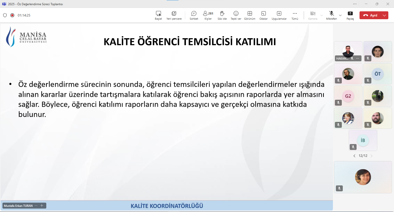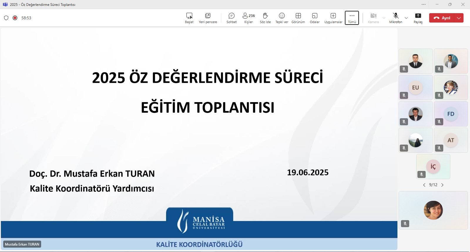 19.06.2025 tarihinde MCBÜ Kalite Koordinatörlüğü tarafından 2025 - Öz Değerlendirme Eğitimi gerçekleştirildi. Eğitime birim kalite temsilcileri, bölüm kalite temsilcileri ve öğrenci kalite temsilcileri katıldı.