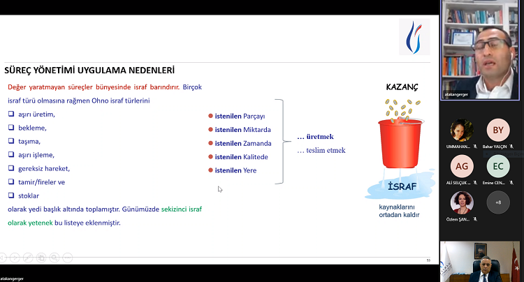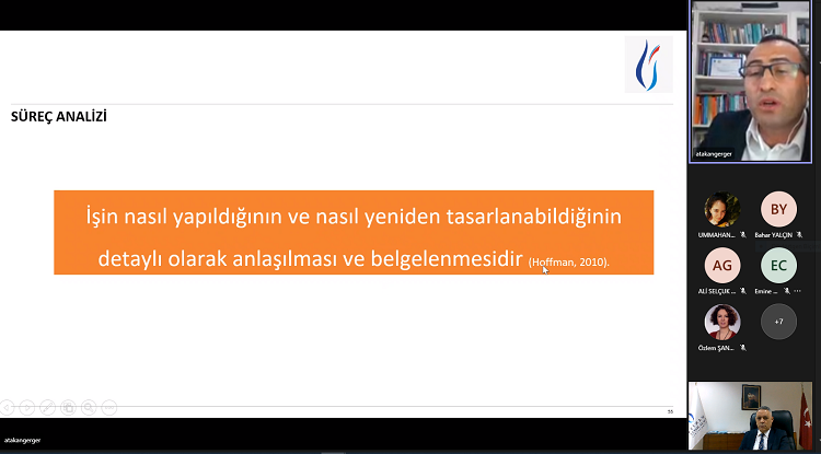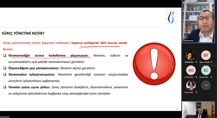 Eğitim sonunda Rektör Yardımcısı Prof. Dr. Ramazan Gökbunar, süreç yönetimi ve stratejik planlama İlişkisi, kritik süreçlerin belirlenmesinin önemine değinerek Üniversitemizde 2022 yılında akademik süreçlerle idari süreçlerin entegrasyonu, süreç işleyişlerinin yalınlaştırılması çalışmalarına yoğunlaşılacağını belirterek keyifli ve verimli geçen eğitim için Dr. Atakan Gerger olmak üzere tüm katılımcılara teşekkür etti.